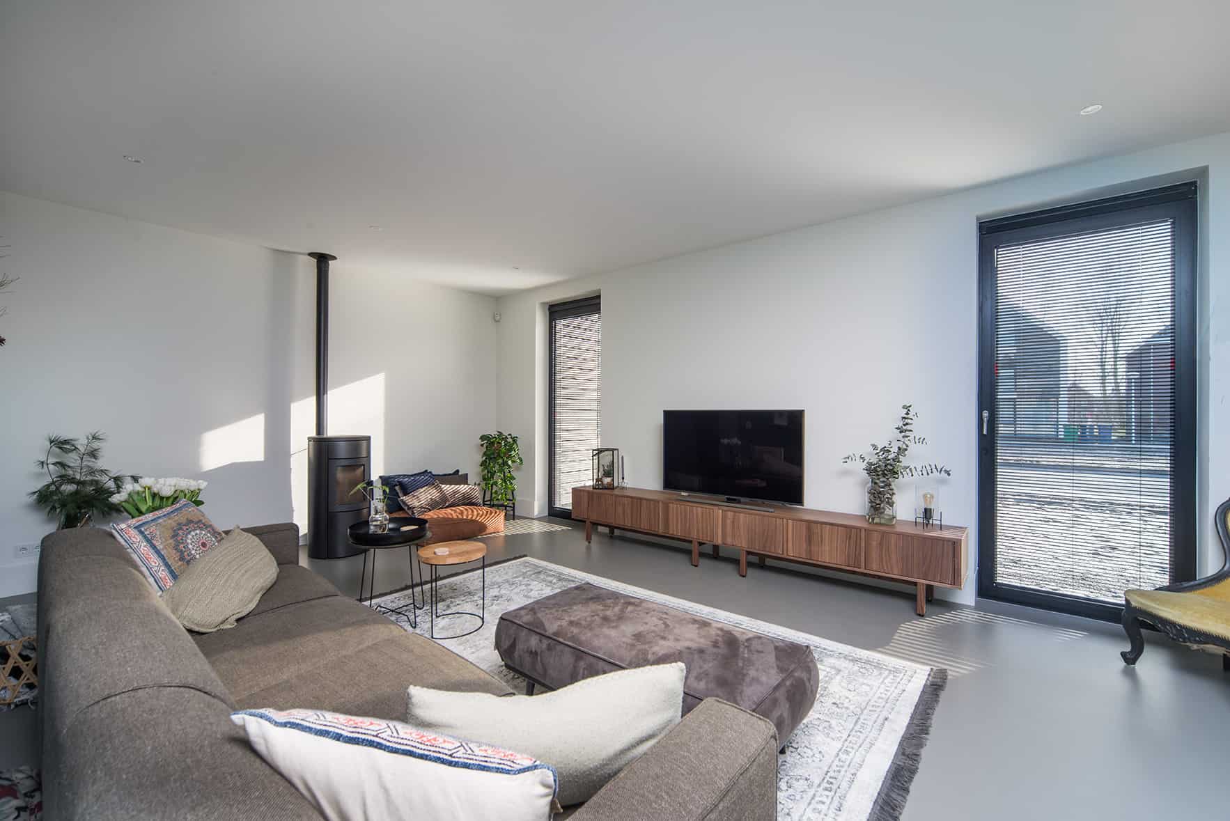 Ook deze woning past met haar bouwvorm, strakke lijnen en materiaalgebruik goed in de architectuur van nu. Bijzonder aan deze woning is dat de gevel volledig is uitgevoerd met houten lamellen. Dat past weer mooi bij de bos- en waterrijke omgeving. Ook de rest van het materiaalgebruik heeft een duurzaam karakter, het zinken dak bijvoorbeeld, dat bovendien is voorzien van zonnepanelen.